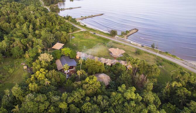 Tetamu boleh berenang di kolam renang luaran. Dikala orang asing mencerobohi kawasan pesisir pantai nenek moyang suku kaum ini akan menentang habis-habisan sehinggalah terjadinya penggal-memenggal kepala. Pantai yang indah ini dibarisi dengan pepohon ru sepanjang 25 kilometer mencantikkan lagi sekeliling pantai tersebut.